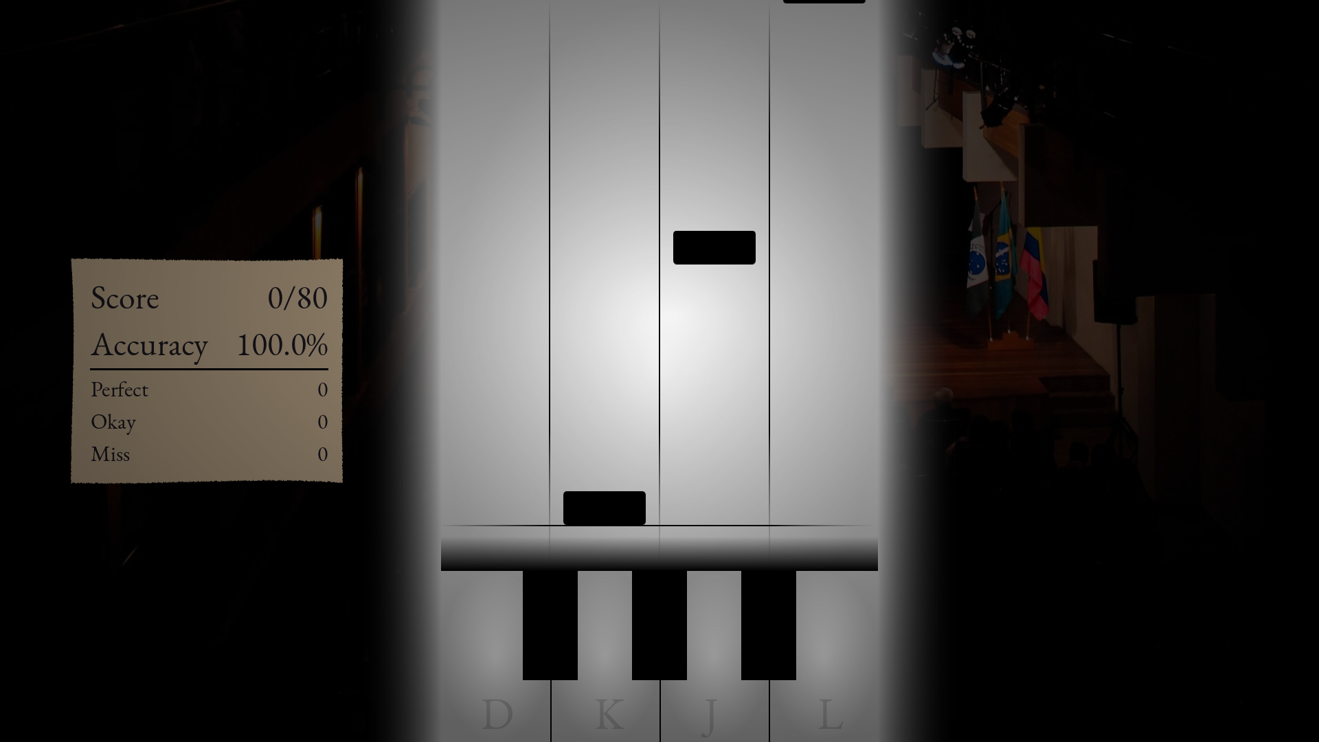 - The labels on the keys don't match with the lanes. Please use DFJK like explained in the tutorial.